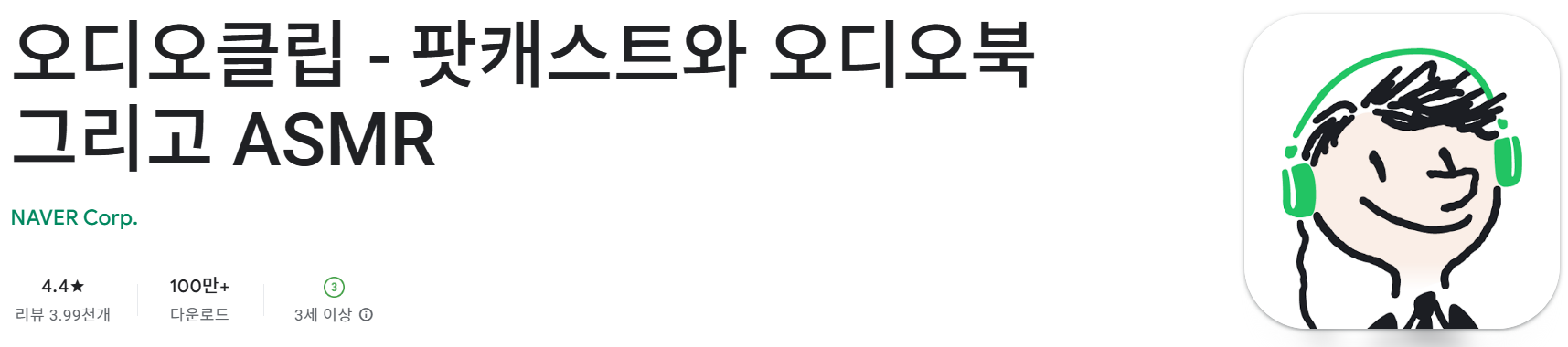 • 안드로이드: 구글 플레이스토어에서 ‘오디오클립’을 검색 후 설치할 수 있습니다. 현재 100만 회 이상 다운로드 되었으며 평점은 약 4.4입니다.