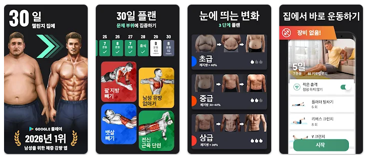 - Android: Google Play 스토어에서 “뱃살 빼기 - 30일만에 체중 감량” 검색 후 설치할 수 있습니다.
