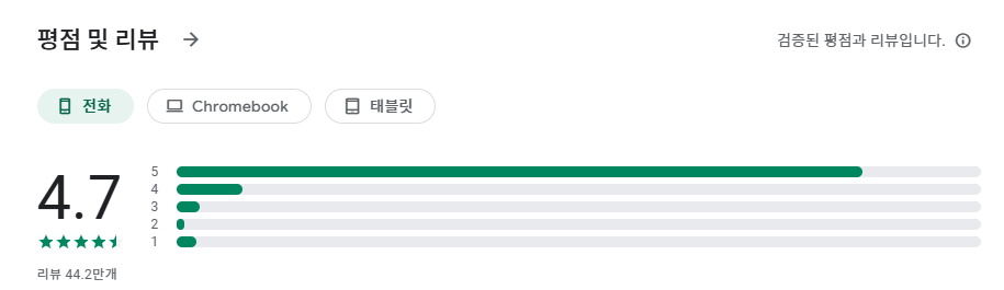 이 앱은 많은 다운로드와 리뷰를 기반으로 높은 평점을 유지하고 있으며, 한글 지원을 포함하여 여러 기능 설정을 한국어로 사용할 수 있어 국내 사용자들에게도 친숙하게 제공됩니다.