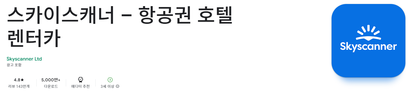 - 안드로이드 설치: 구글 플레이 스토어에서 “스카이스캐너 – 항공권 호텔 렌터카”를 검색하여 설치 버튼을 누르면 다운로드할 수 있습니다.