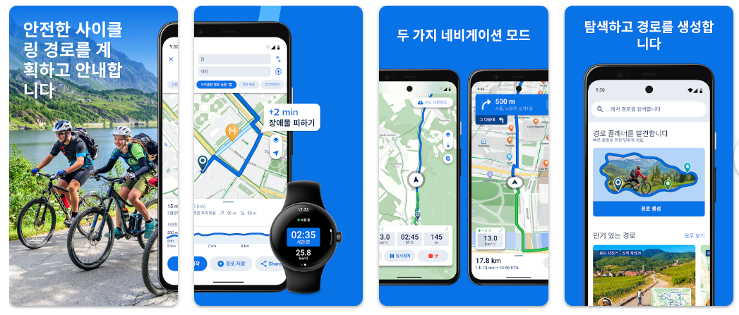 - 로드 자전거, 산악 자전거, 시티 자전거 등 자전거 유형에 맞춰 경로를 최적화할 수 있습니다.
