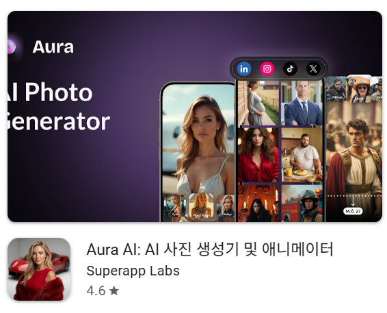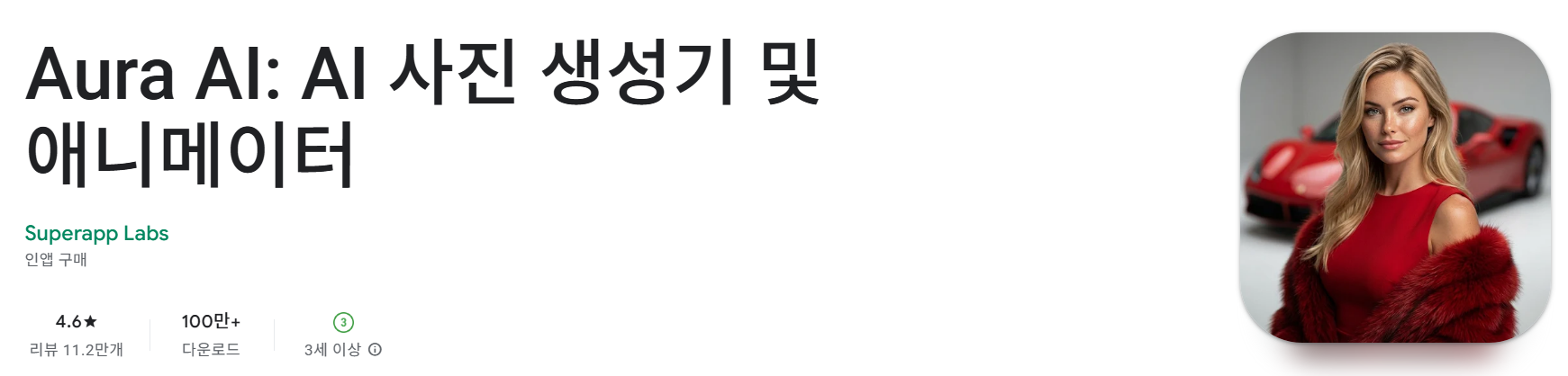 이러한 흐름 속에서 등장한 앱 가운데 하나가 바로 Aura AI: AI 사진 생성기 및 애니메이터입니다. 이 앱은 인공지능 기술을 활용하여 사용자의 사진을 기반으로 다양한 스타일의 이미지를 생성하거나 애니메이션 효과를 추가하는 기능을 제공하는 AI 콘텐츠 제작 앱입니다.