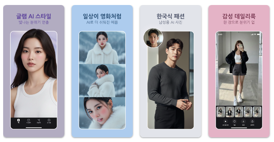 - "셀카 한 장으로 다양한 스타일의 이미지를 만들어줘서 프로필 사진 만들 때 정말 편합니다."