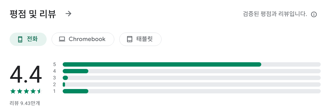 - 설치 시 Android 7.1 이상이 요구되며 약 44.6MB의 저장 공간이 필요합니다.