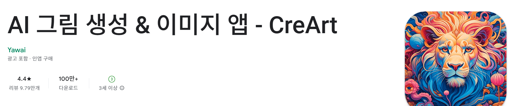 - Google Play 스토어에서 “AI 그림 생성 & 이미지 앱 - CreArt”를 검색해 설치할 수 있습니다.