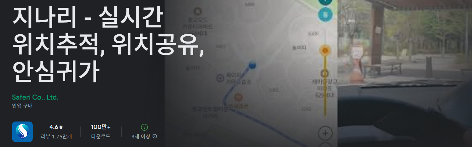 그중 지나리 - 실시간 위치추적, 위치공유, 안심귀가는 스마트폰 기반으로 실시간 위치 확인, 위치 공유, 과거 이동 경로 조회 등 꼭 필요한 기능을 대부분 제공하는 위치추적 서비스입니다. 자녀 위치 확인뿐 아니라 휴대폰 분실 방지, 직원 위치 확인 등 다양한 상황에서 활용할 수 있어 개인 사용자부터 가족 단위 사용자까지 폭넓게 사용됩니다.