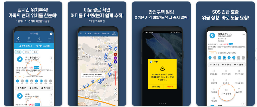 - 긴급 대응: SOS 알림을 설정하여 위급 상황 시 빠르게 위치를 확인하고 도움을 요청할 수 있습니다.