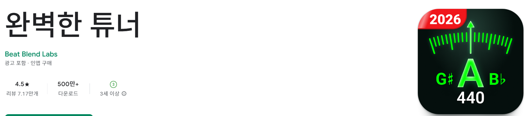 이 어플은 단순 튜닝 기능에 집중한 구조로, 연습실이나 공연 전 빠른 조율이 필요한 상황에서 유용하게 활용할 수 있습니다. 시각적 요소보다는 정확성과 안정성을 중시하는 사용자에게 적합한 성향을 보입니다.